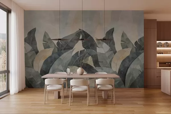 Wall murals textured banana leaves in natural shades of beige, green and gray Nr. w04285