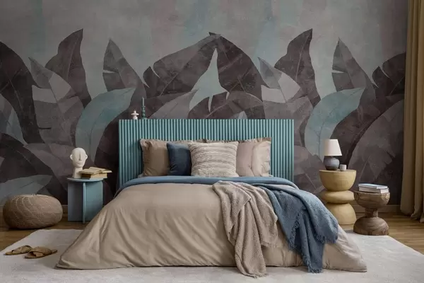 Wall murals textured banana leaves in shades of blue and gray Nr. w04285v2