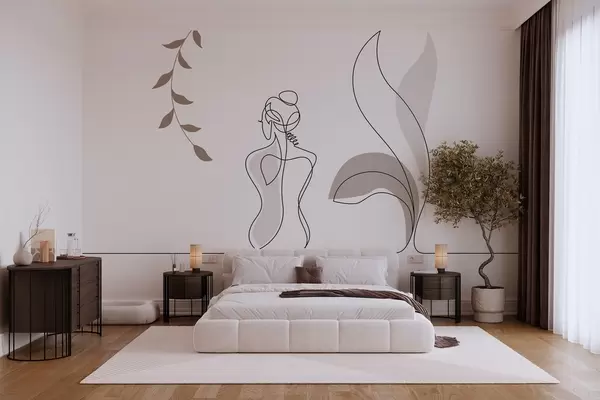 Wall murals linear silhouette of a woman and leaves Nr. w04303