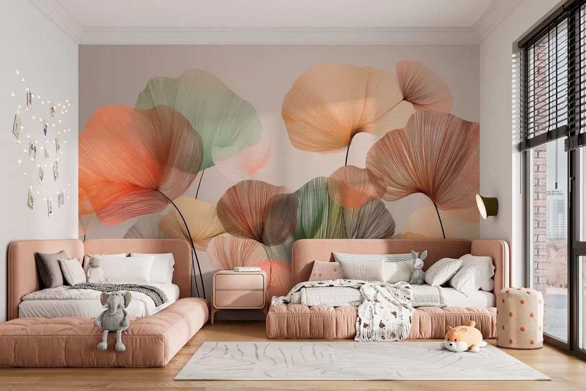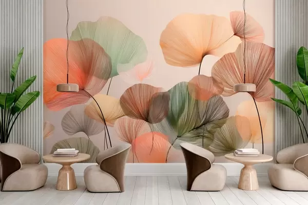 Wall murals multicolored ginkgo leaves with veins Nr. w04305