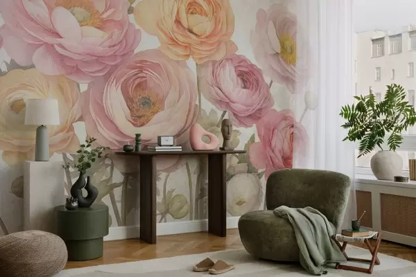 Wall murals Vintage bouquet of ranunculus Nr. w04326