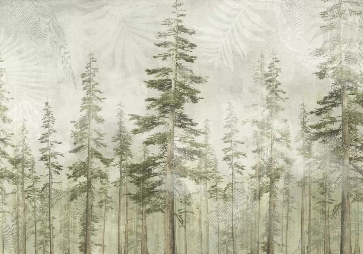 Wall murals Pine forest with vintage paper texture and fine patterns Nr. w04342