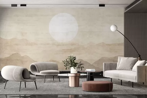 Wall murals Minimalist mountain landscape with large white sun Nr. w04345