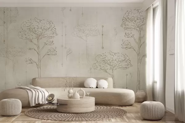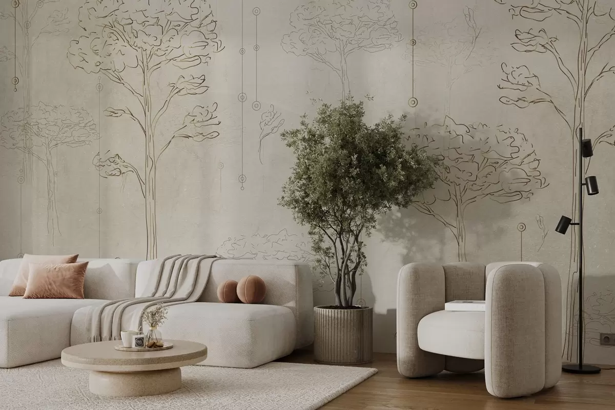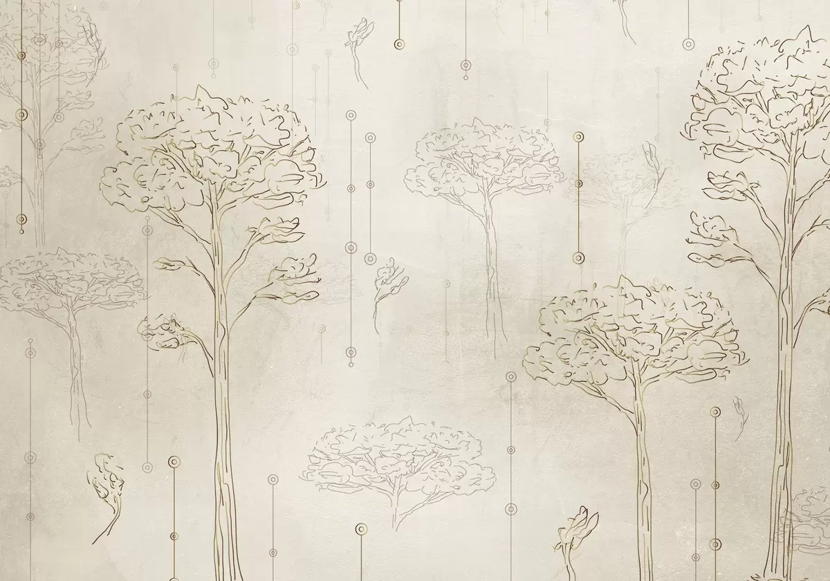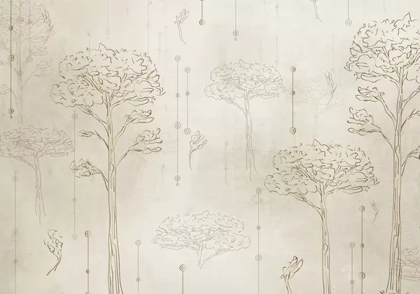 Wall murals Linear silhouettes of trees in minimalist style Nr. w04403