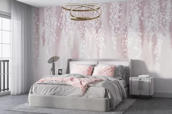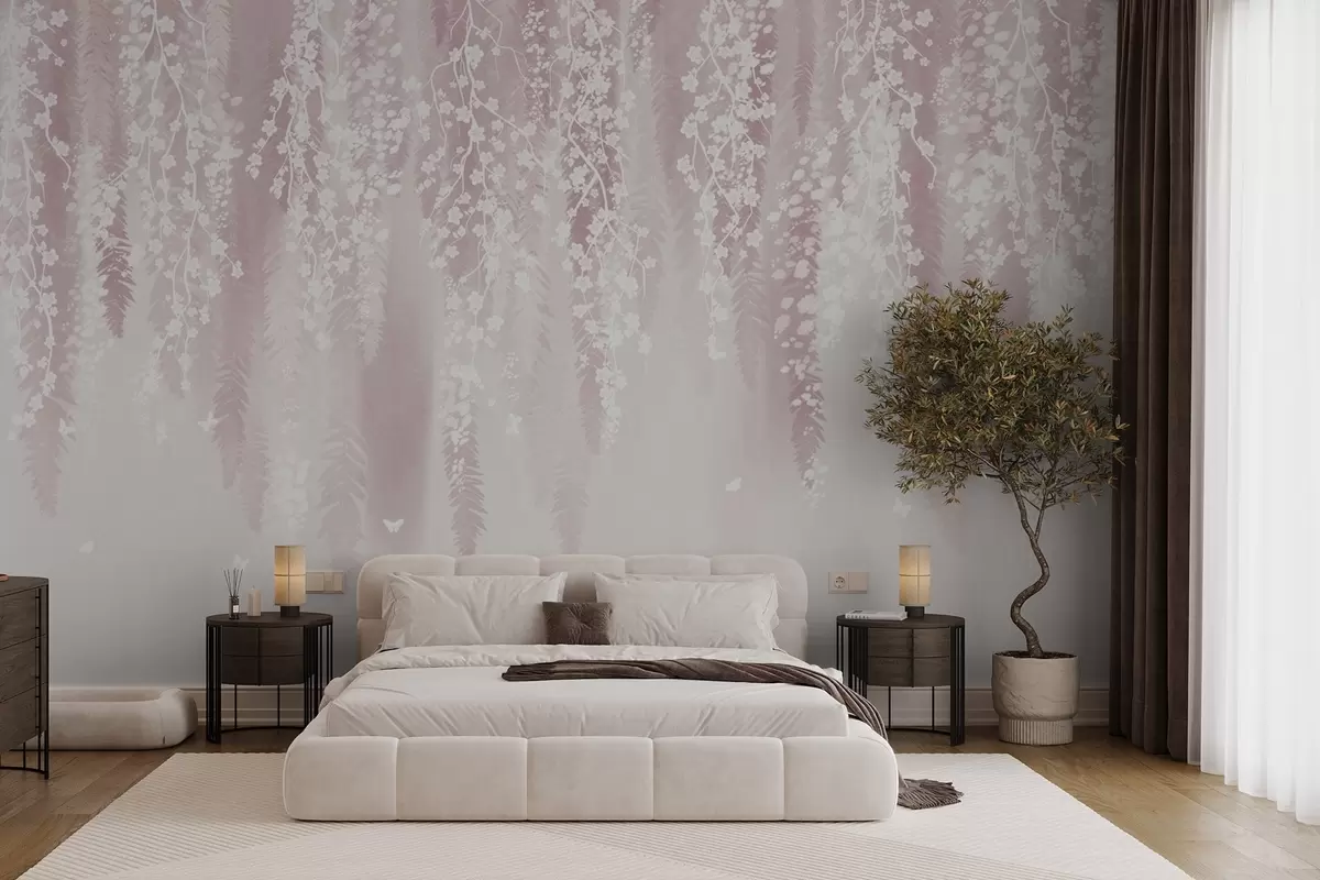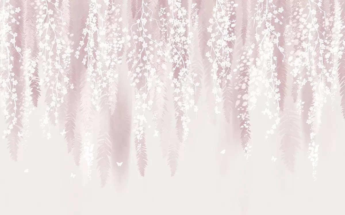 Wall murals Pink version of branches with white flowers Nr. w04417v1