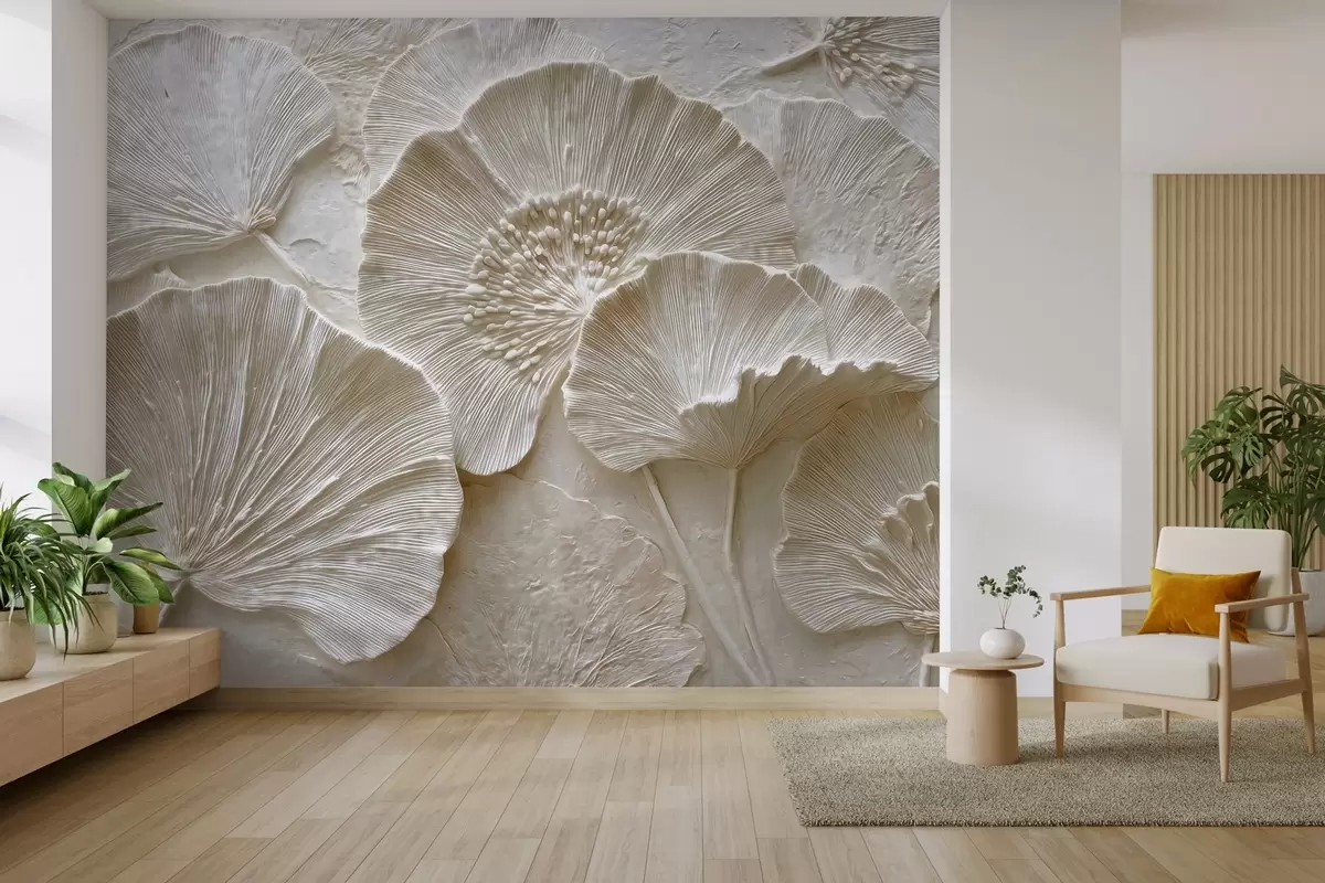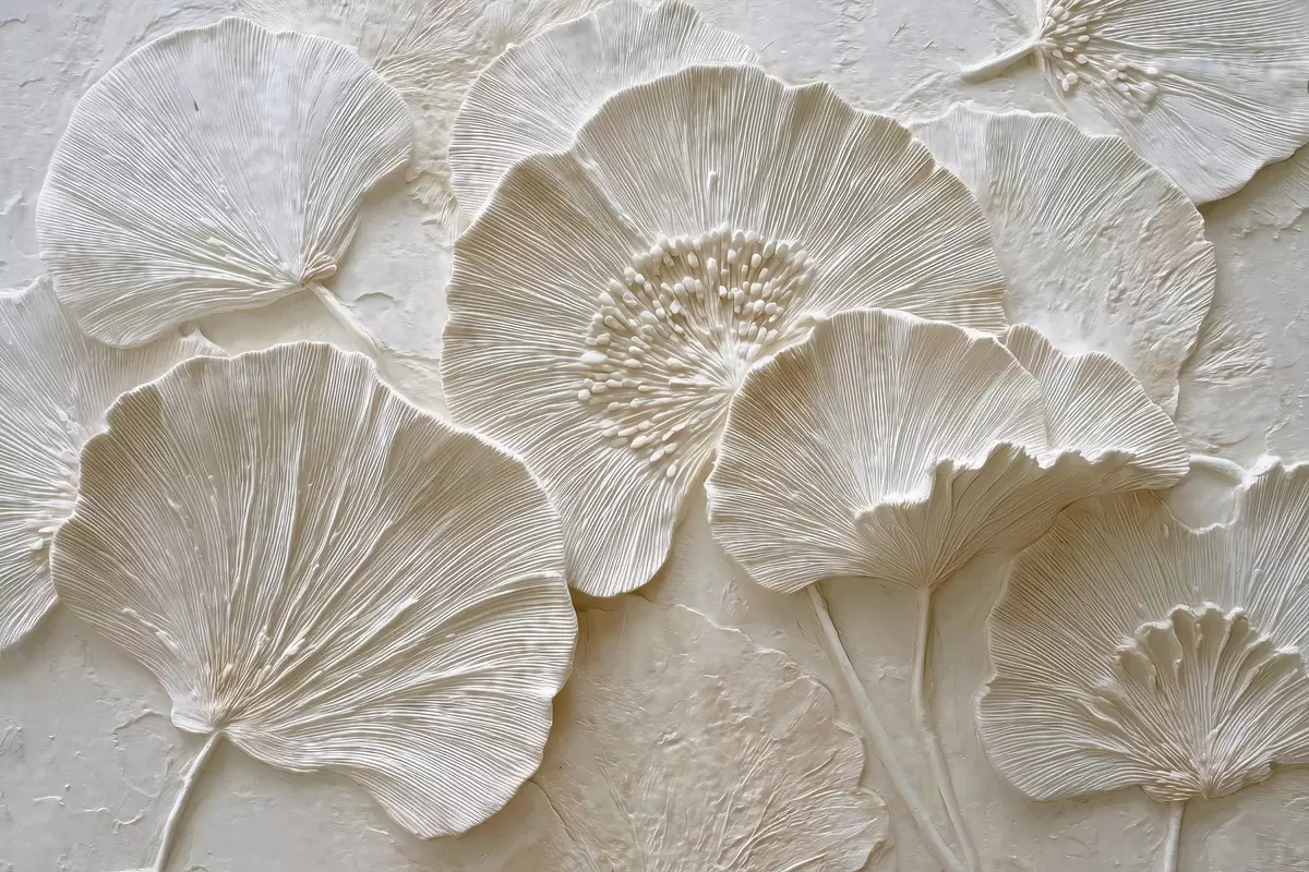 Wall murals Voluminous ginkgo leaves in a light embossed style Nr. w04444