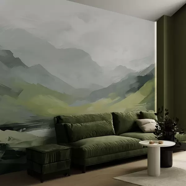 Wall murals Abstract mountain landscape in shades of green Nr. w04447