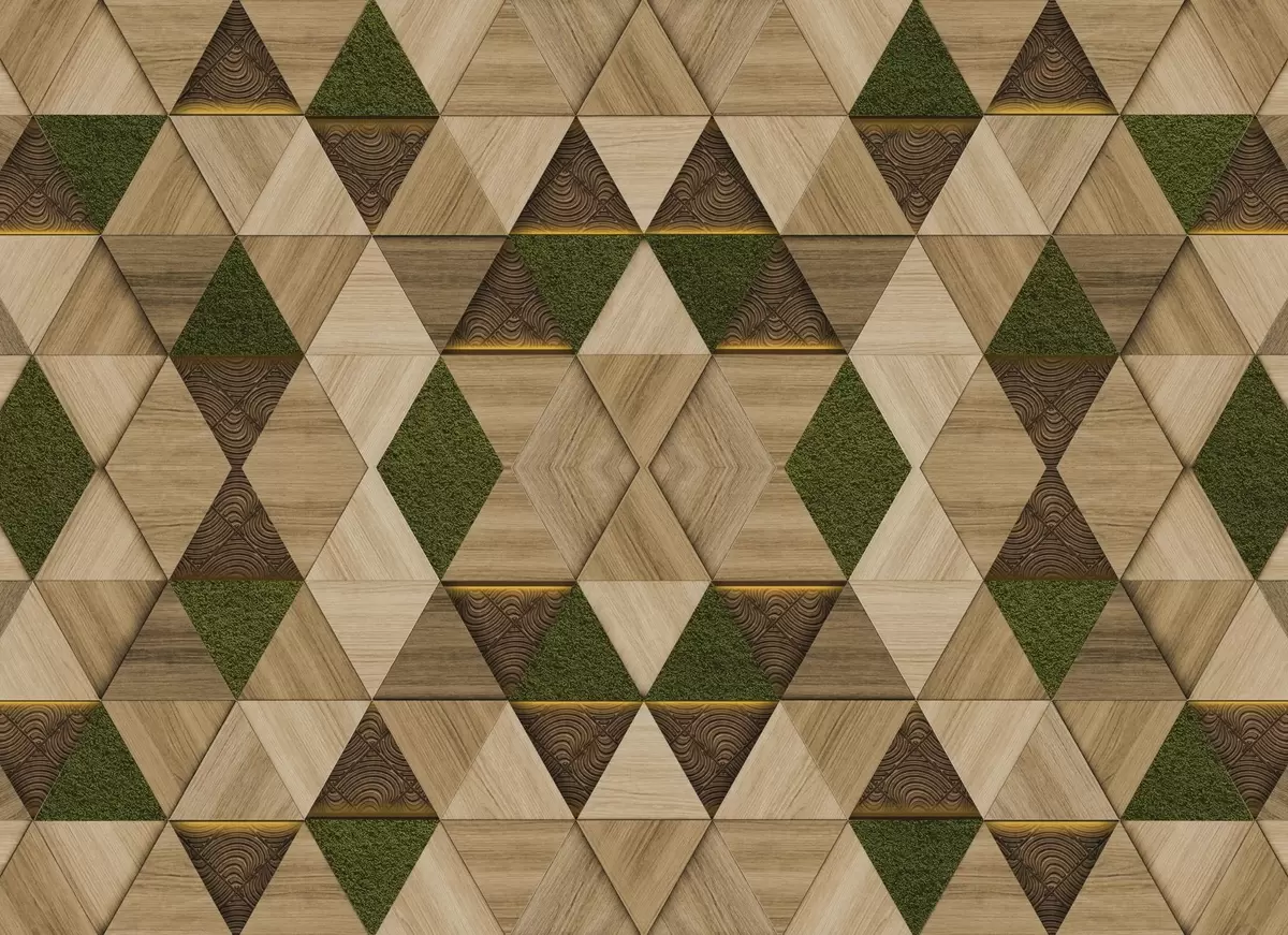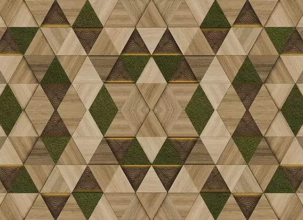 Wall murals Geometric wooden ornament with moss Nr. w04459
