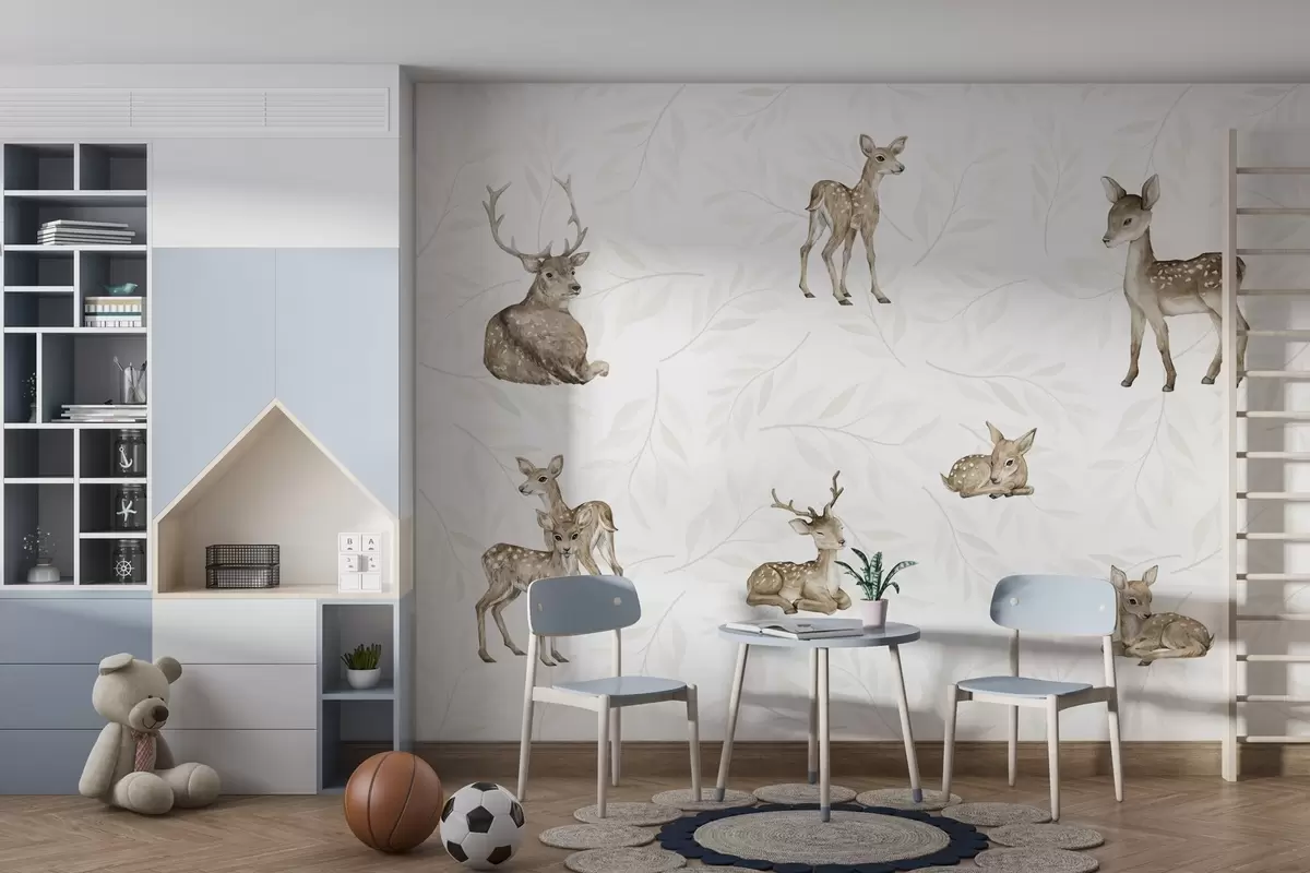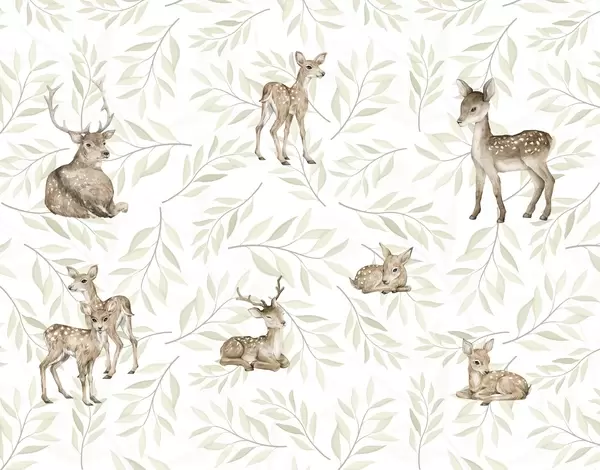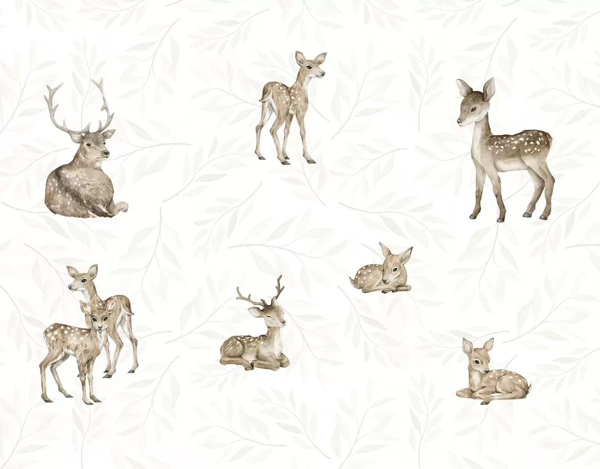 Wall murals Cute fawns on a light background with twigs Nr. w04461