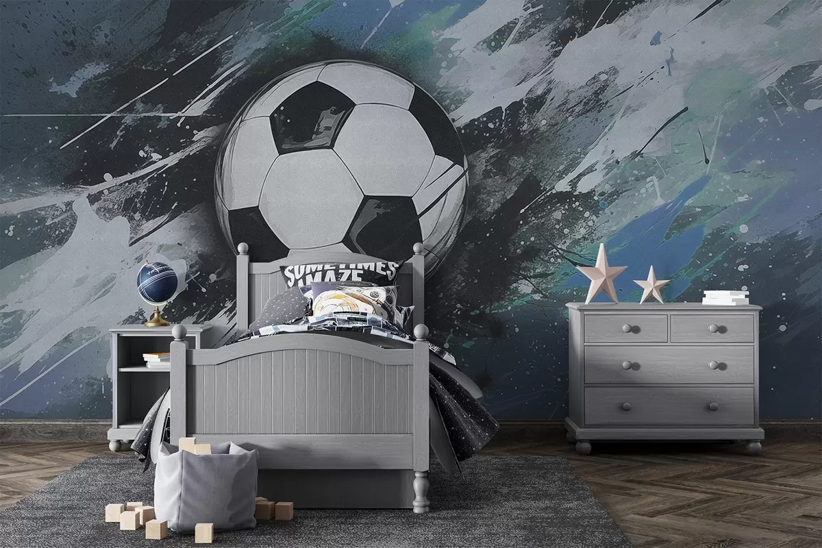 Wall murals Soccer ball with blurred graffiti in the background Nr. w04467v1
