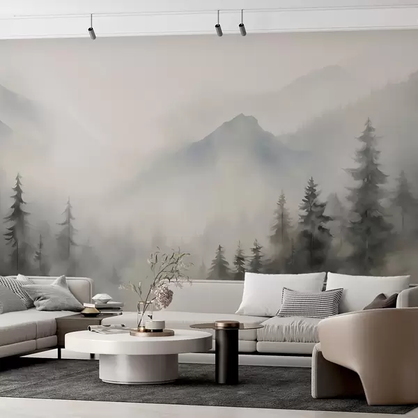 Wall murals Forest in the fog against the backdrop of mountains Nr. w04493
