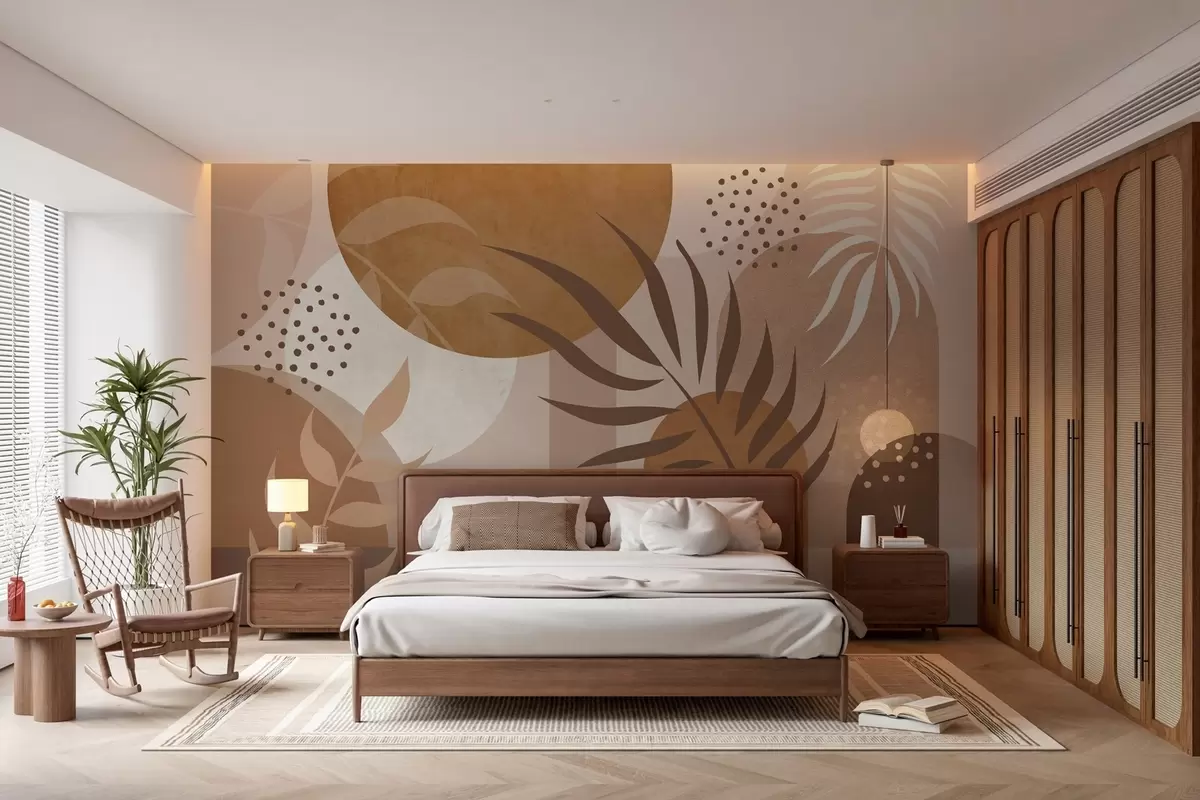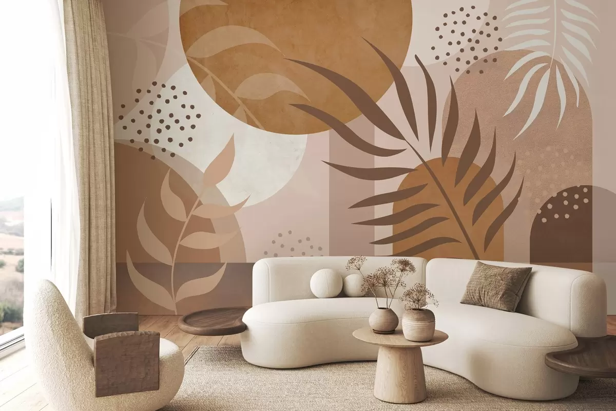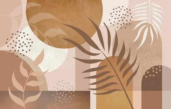 Wall murals Contemporary abstraction with plants in brown and beige tones Nr. w04497