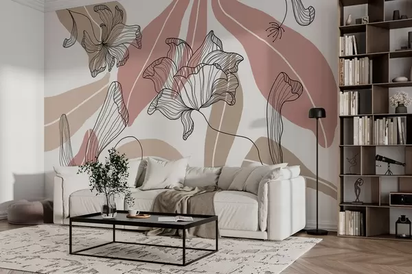 Wall murals abstract leaves and flowers in powdery and beige tones Nr. w04499
