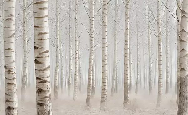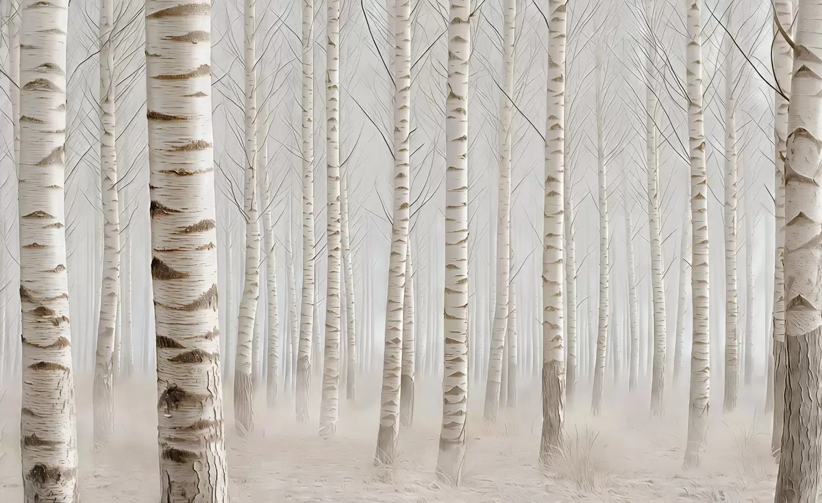 Wall murals Birch forest in the fog, light minimalism Nr. w04574