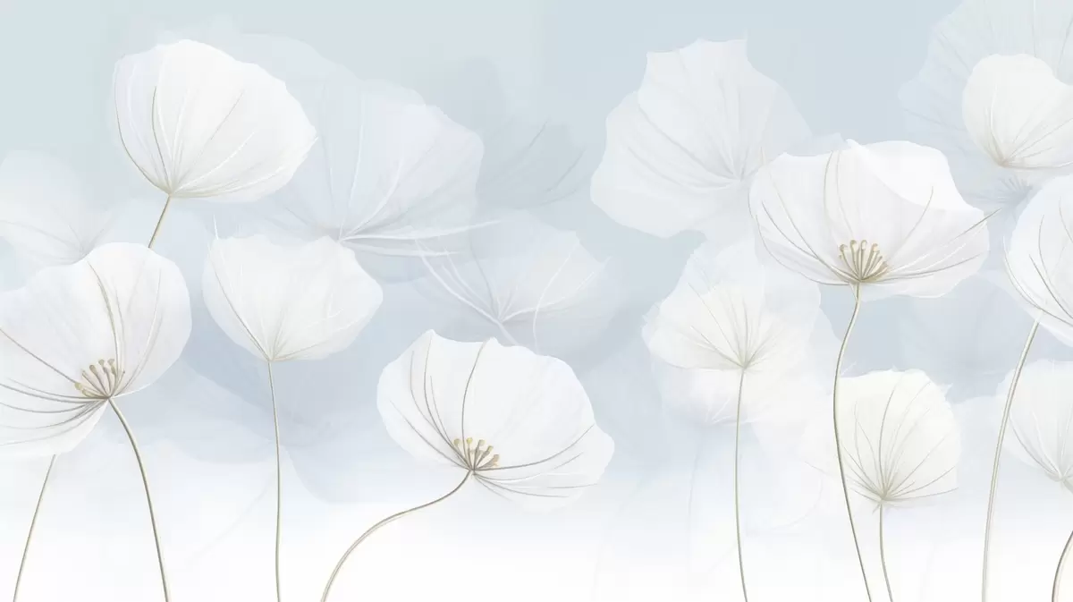 Wall murals Airy white flowers on a blue background Nr. w04580