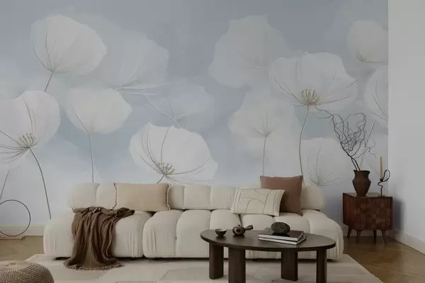 Wall murals Airy white flowers on a blue background Nr. w04580