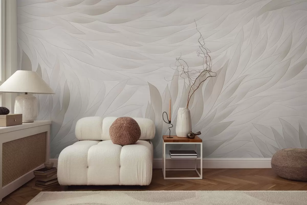 Wall murals Wavy leaves in soft cream shades Nr. w04610