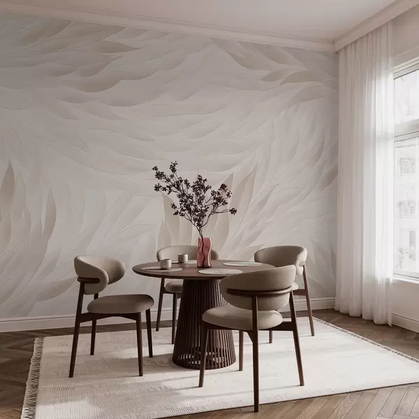 Wall murals Wavy leaves in soft cream shades Nr. w04610