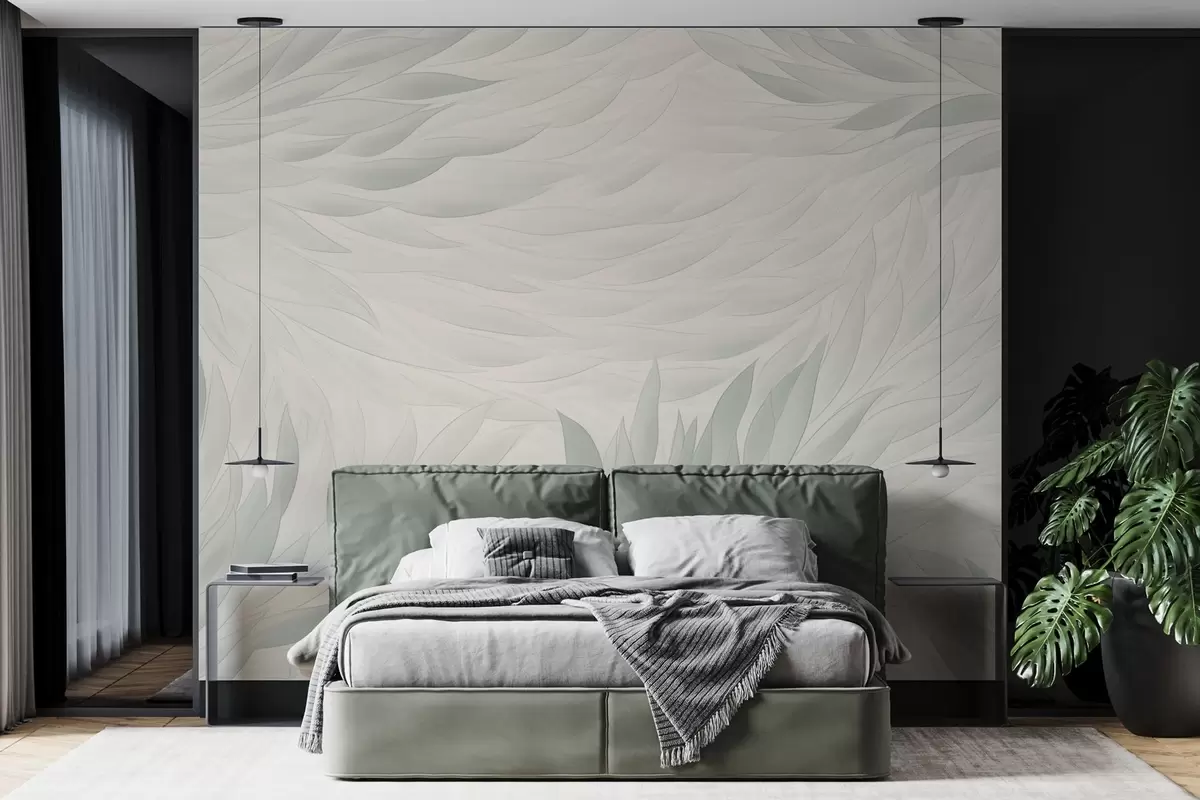 Wall murals Wavy leaves in gentle greenish-beige hues Nr. w04610v2