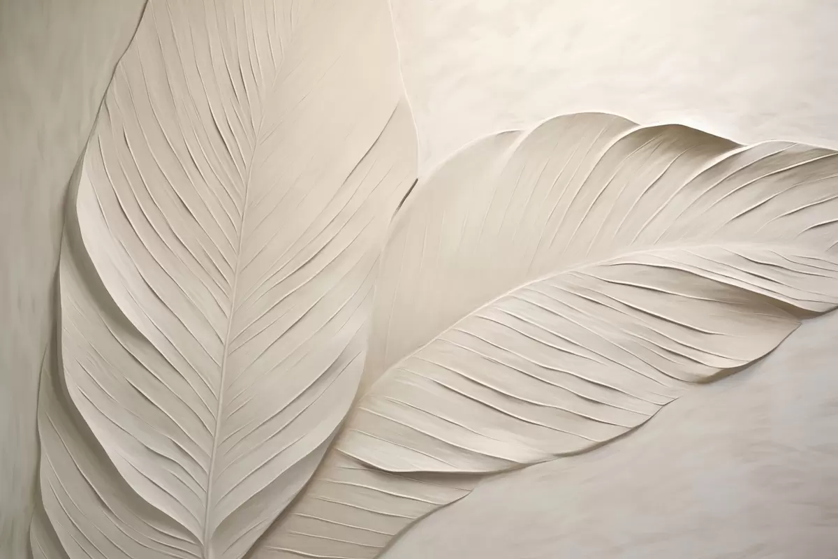 Wall murals Embossed beige leaves with soft shadows Nr. w04614