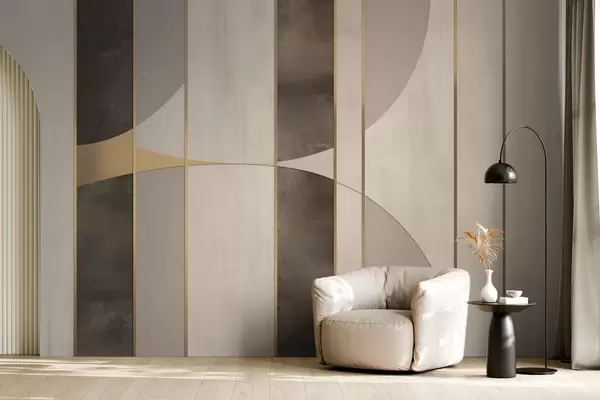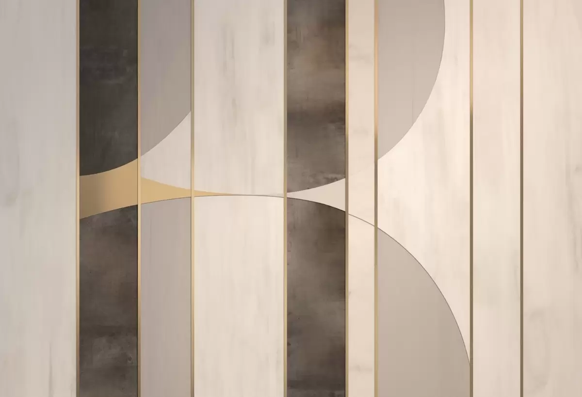Wall murals Geometric panels with arcs and champagne accents Nr. w04616