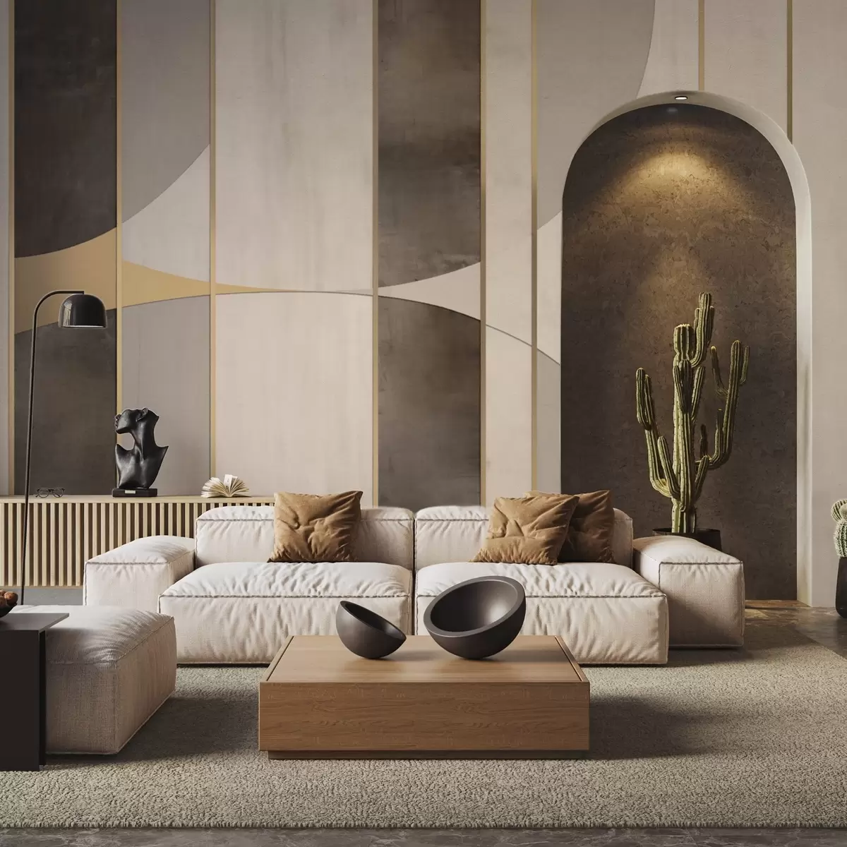 Wall murals Geometric panels with arcs and champagne accents Nr. w04616
