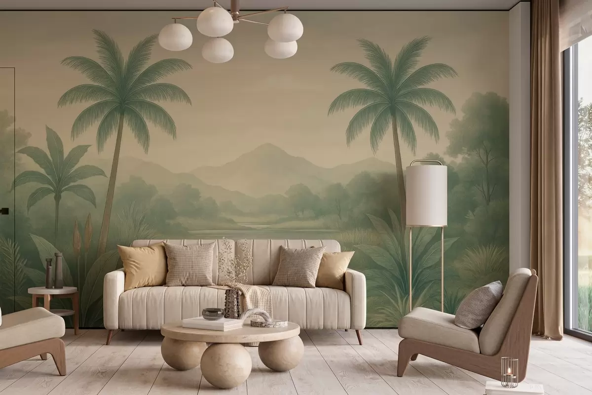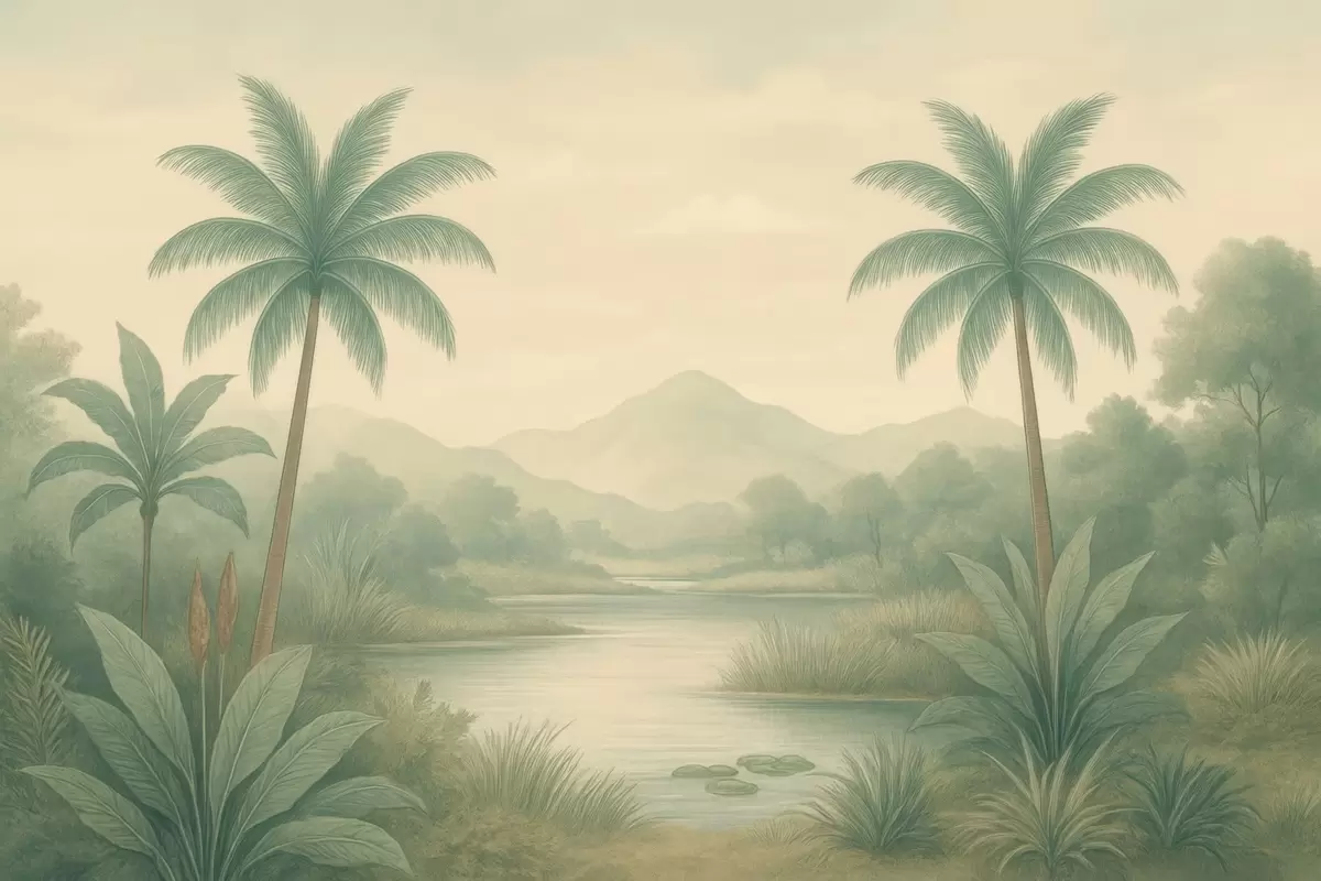 Wall murals tropical landscape with palm trees and a river Nr. w04623