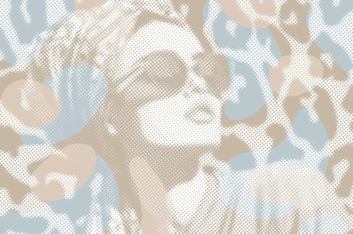 Wall murals portrait of a woman on a leopard background in a dotted style in beige and blue tones Nr. w04630