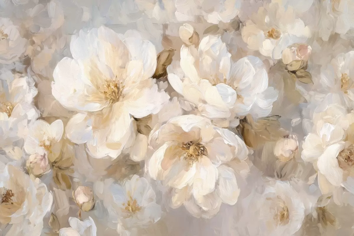 Wall murals large flowers in white and beige tones in the style of oil painting Nr. w04633