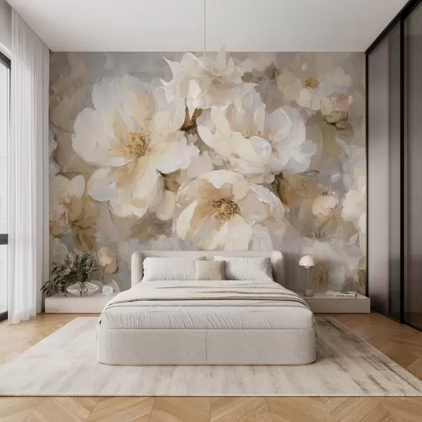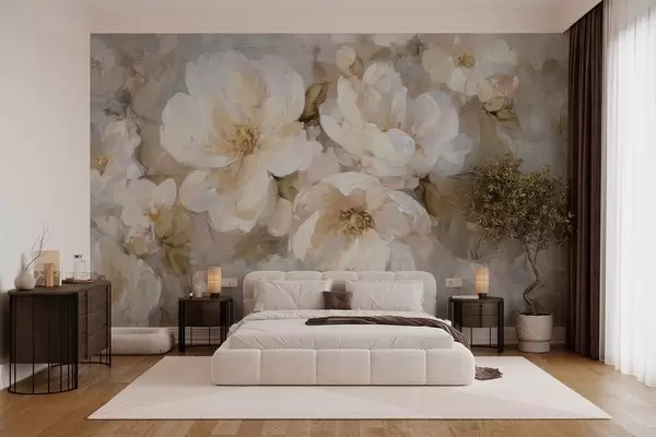 Wall murals large flowers in white and beige tones in the style of oil painting Nr. w04633