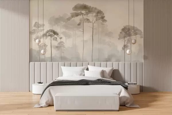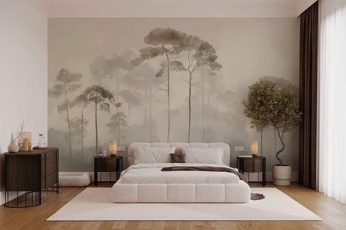 Wall murals light silhouettes of pine trees in watercolour style Nr. w04634