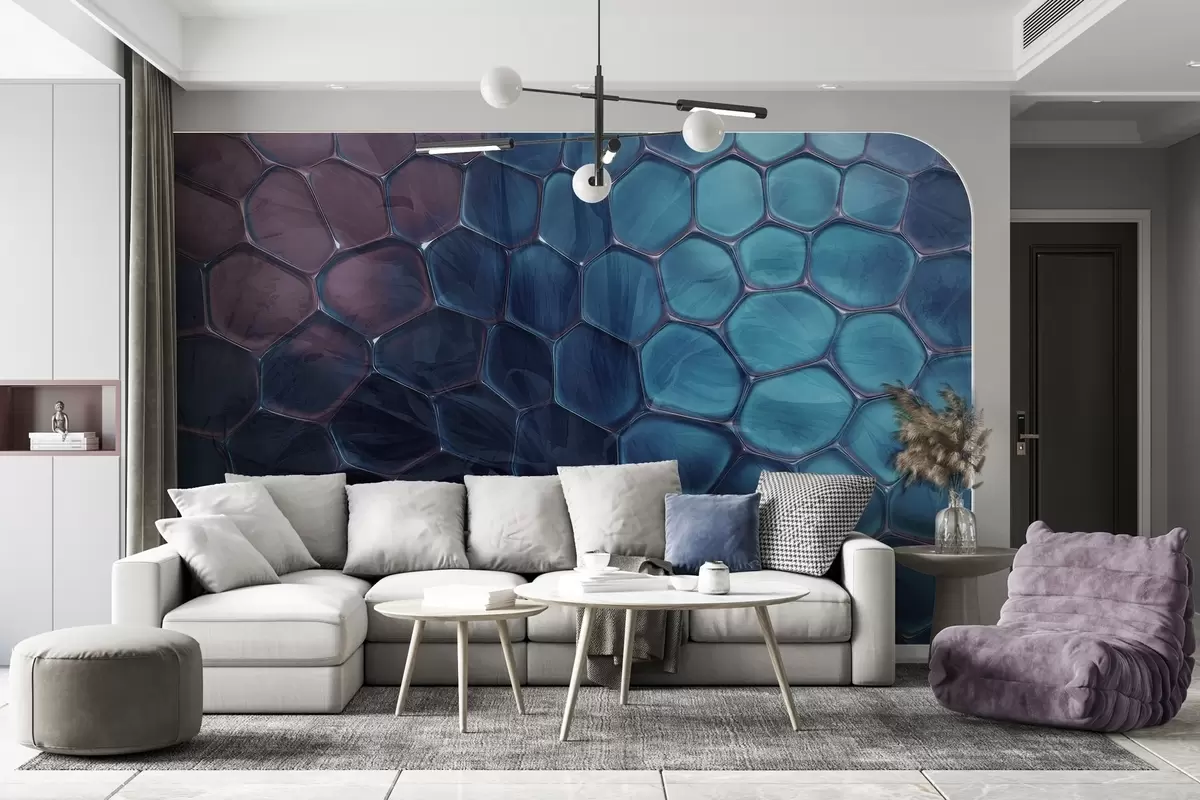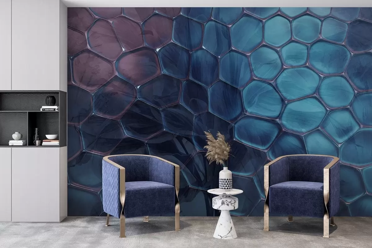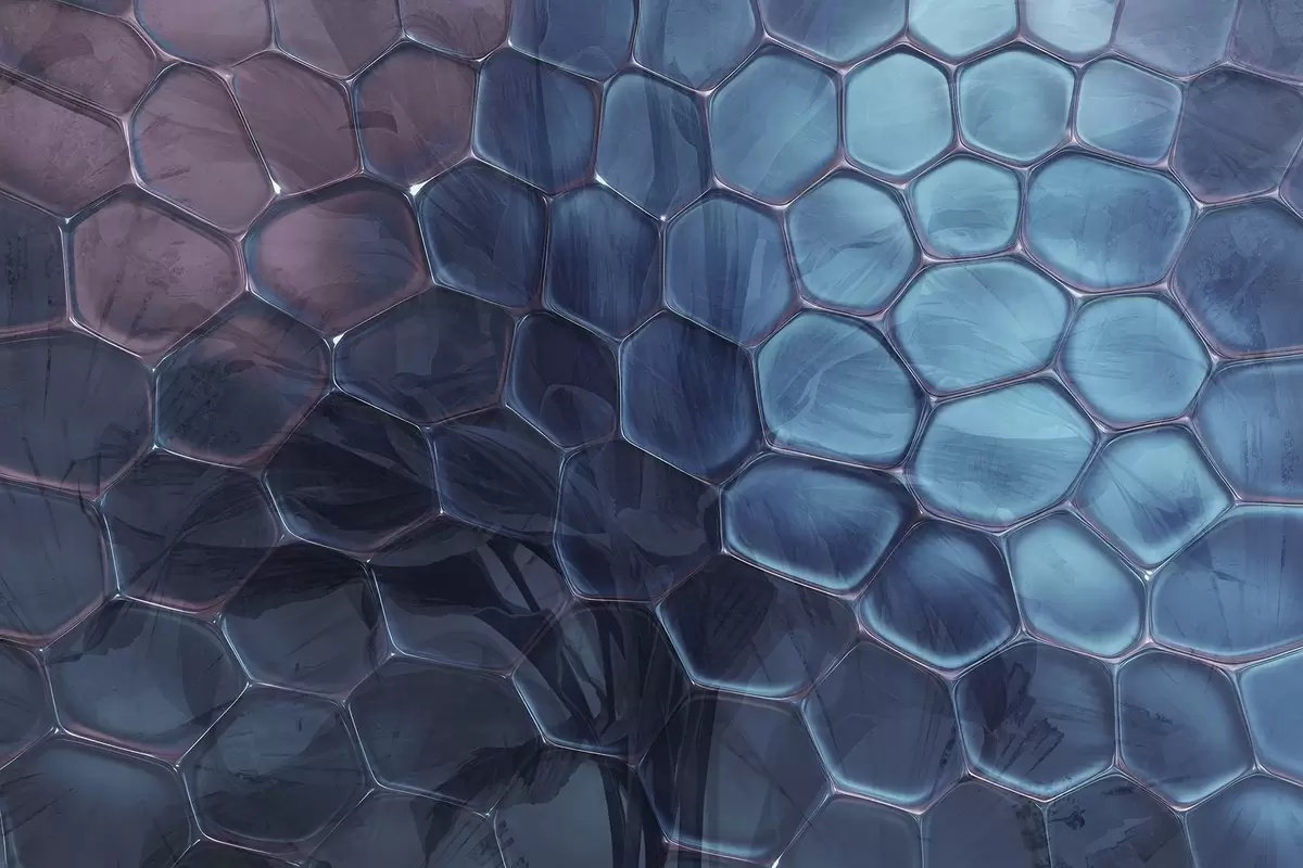 Wall murals Leaves through glass honeycombs Nr. w04667v1