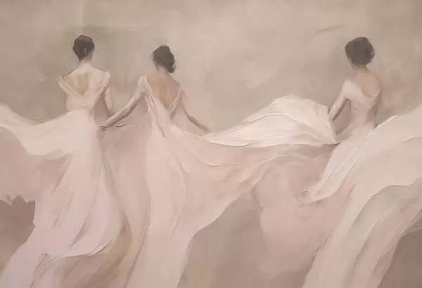 Wall murals Three women in pink dresses, flowing fabric, softness Nr. w04709