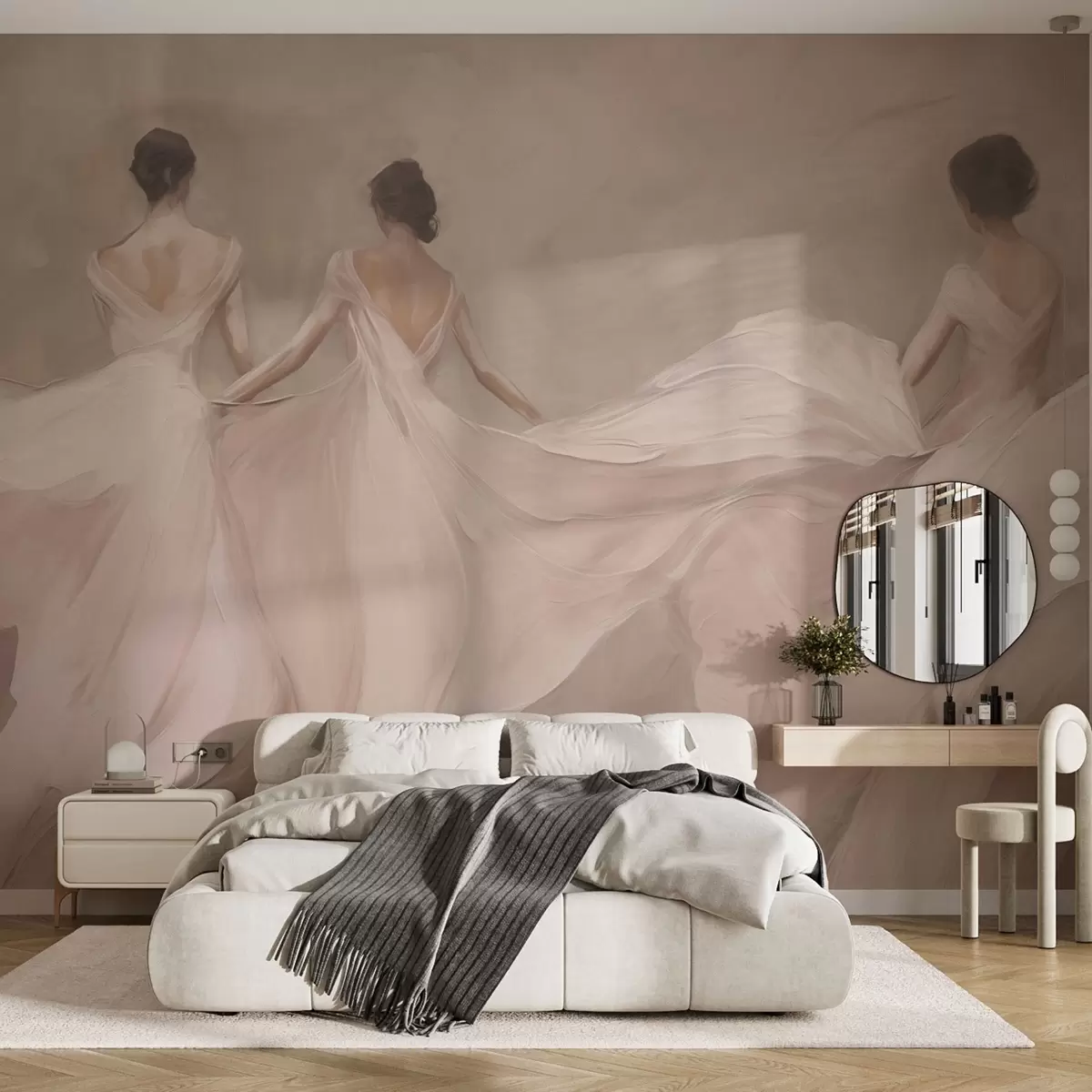 Wall murals Three women in pink dresses, flowing fabric, softness Nr. w04709