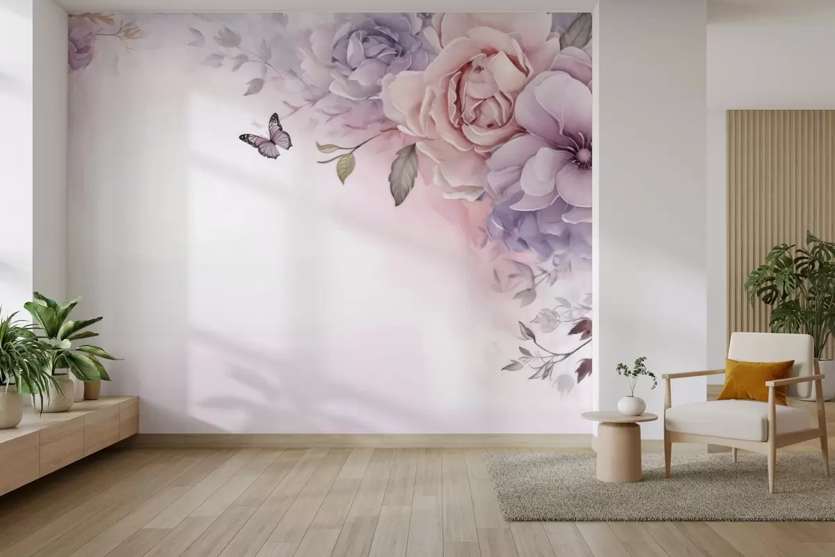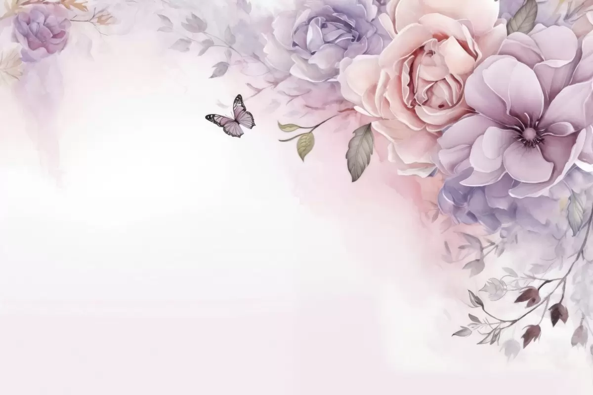 Wall murals Delicate pink and lilac flowers with a butterfly Nr. w04711