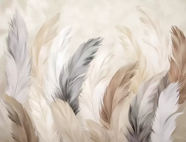 Wall murals Soft fluffy feathers in a warm neutral palette Nr. w04736