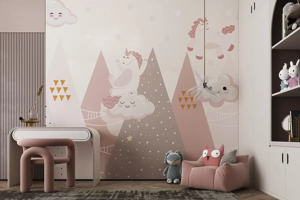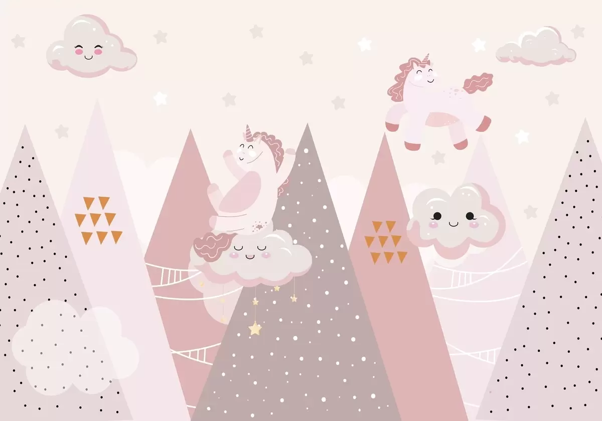 Wall murals Pony in the mountains with clouds Nr. w04741