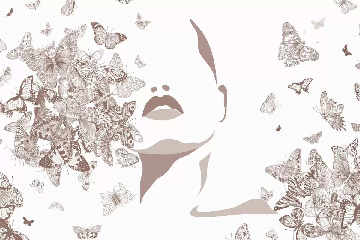 Wall murals Silhouette of a face among butterflies Nr. w04778
