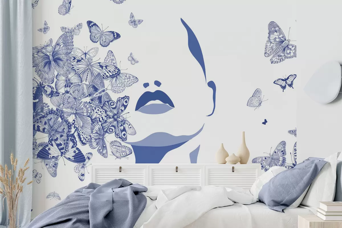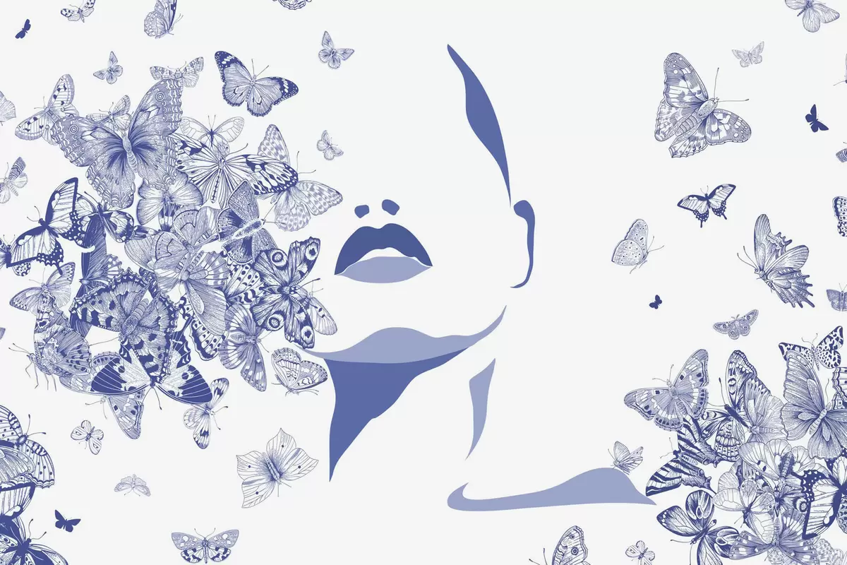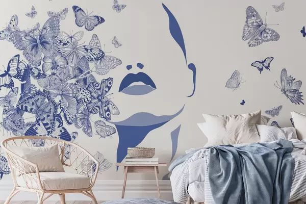 Wall murals Silhouette of a face among butterflies Nr. w04778v1