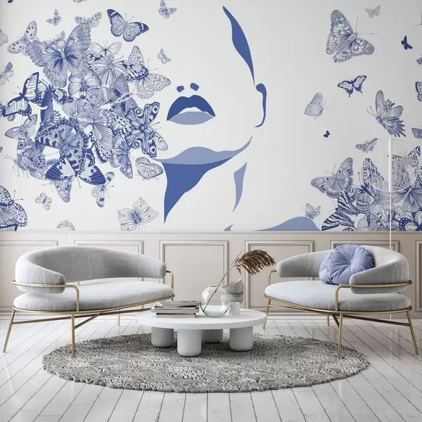 Wall murals Silhouette of a face among butterflies Nr. w04778v1
