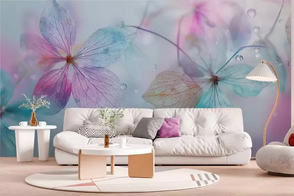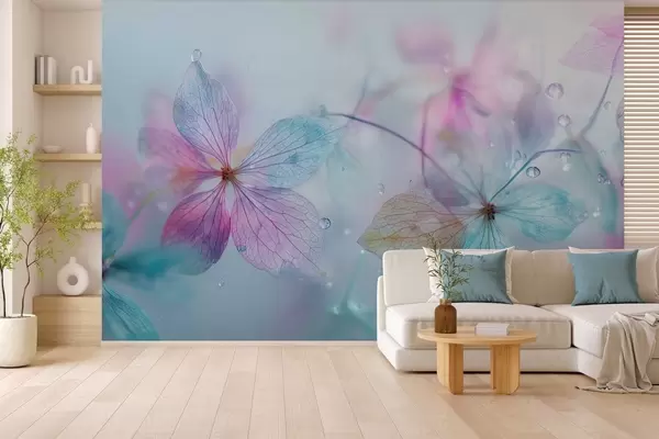 Wall murals delicate flowers with veins under water Nr. w04809