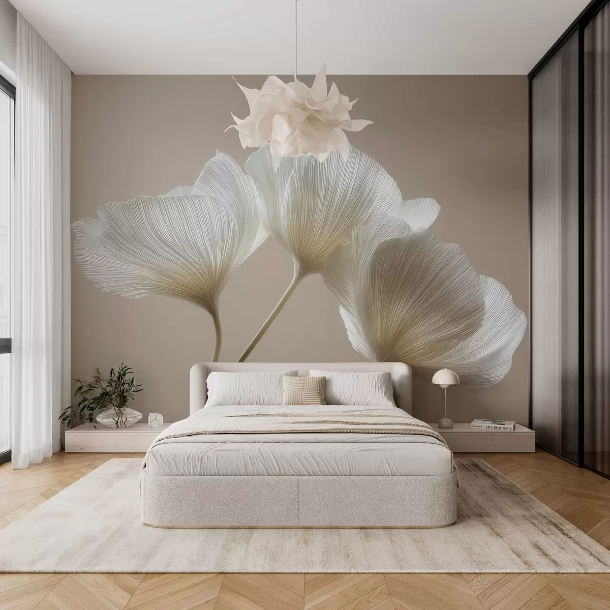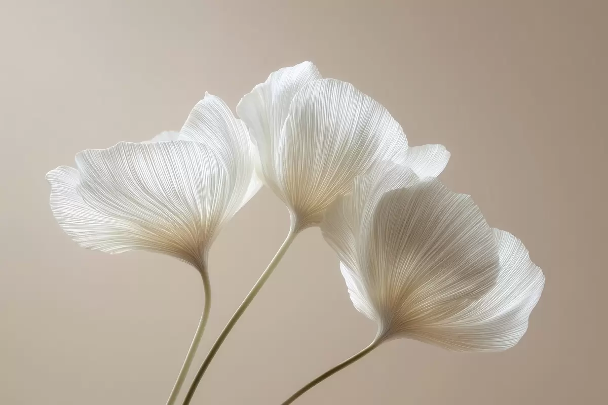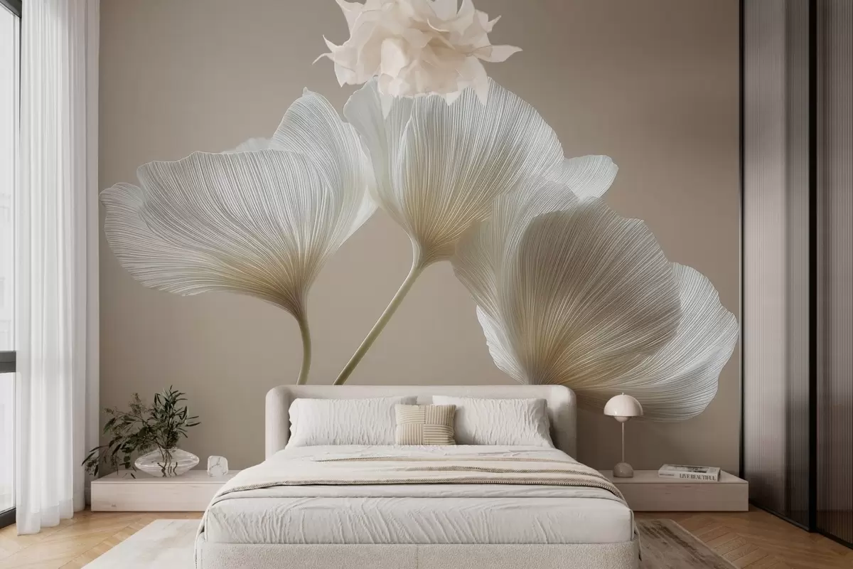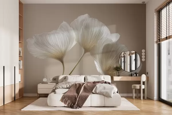 Wall murals three delicate flowers on a beige background Nr. w04810