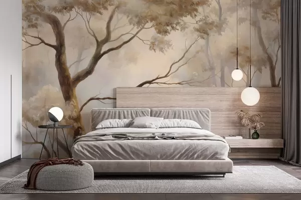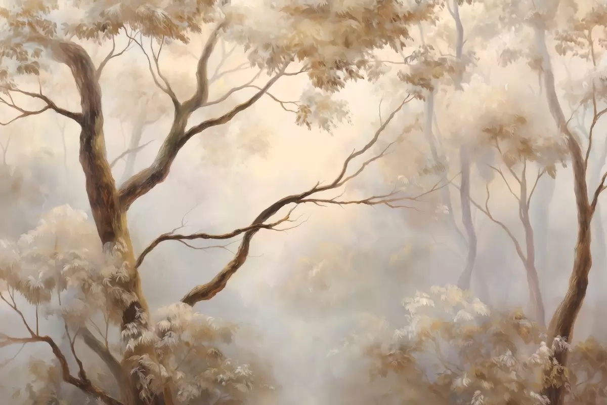 Wall murals The forest in the light morning mist. A delicate atmospheric painting in the style of an artistic landscape. Nr. w04817