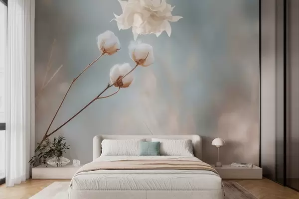 Wall murals three cotton flowers on a blurred background Nr. w04820