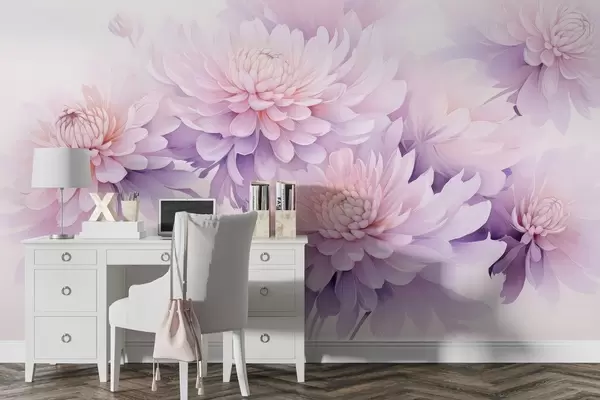 Wall murals Lush watercolor chrysanthemums on a light background Nr. w04832