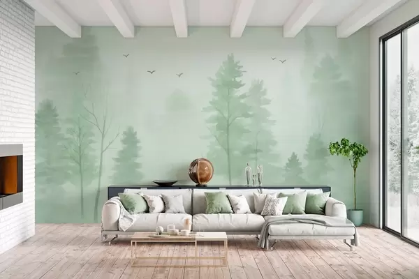 Wall murals watercolour-style aerial forest in green tones Nr. w04872v1