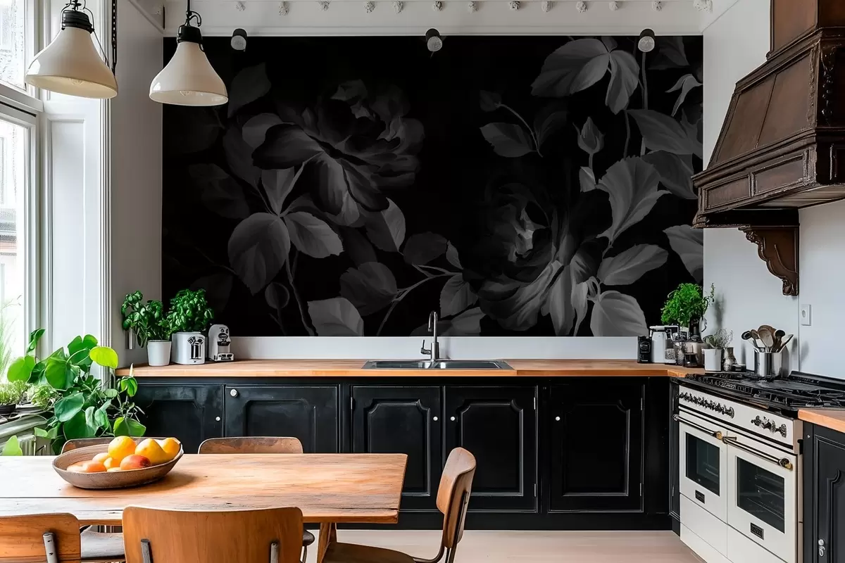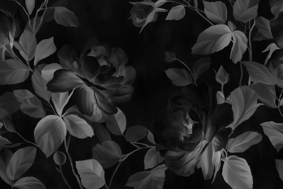 Wall murals black and white picturesque roses in the style of oil painting Nr. w04873v1