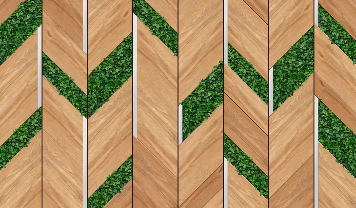 Wall murals imitation of light wooden panels with plant inserts Nr. w04875