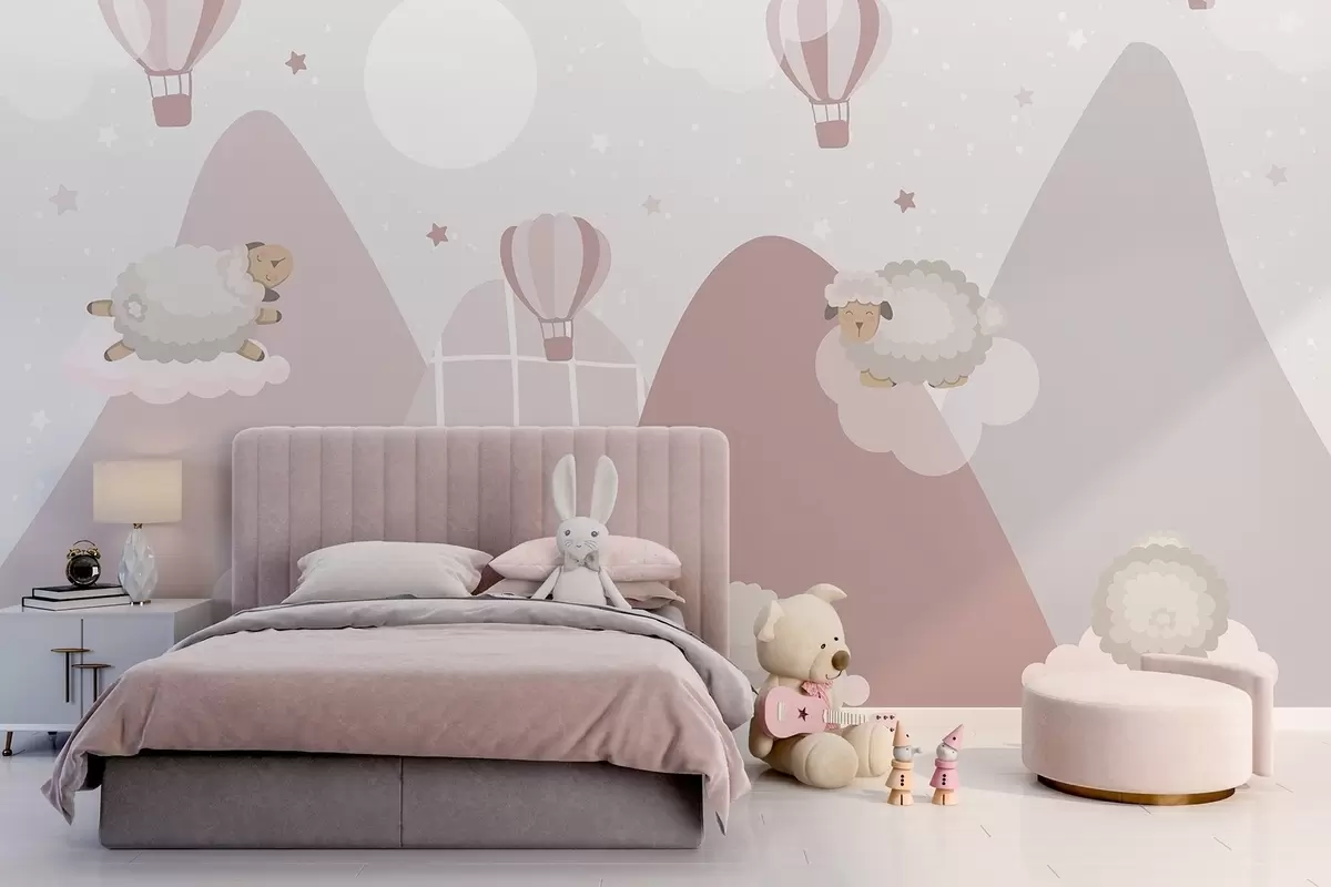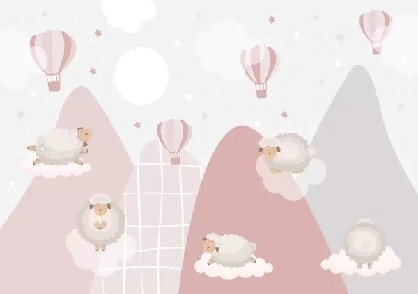 Wall murals Sleeping sheep on pink mountains Nr. w04932