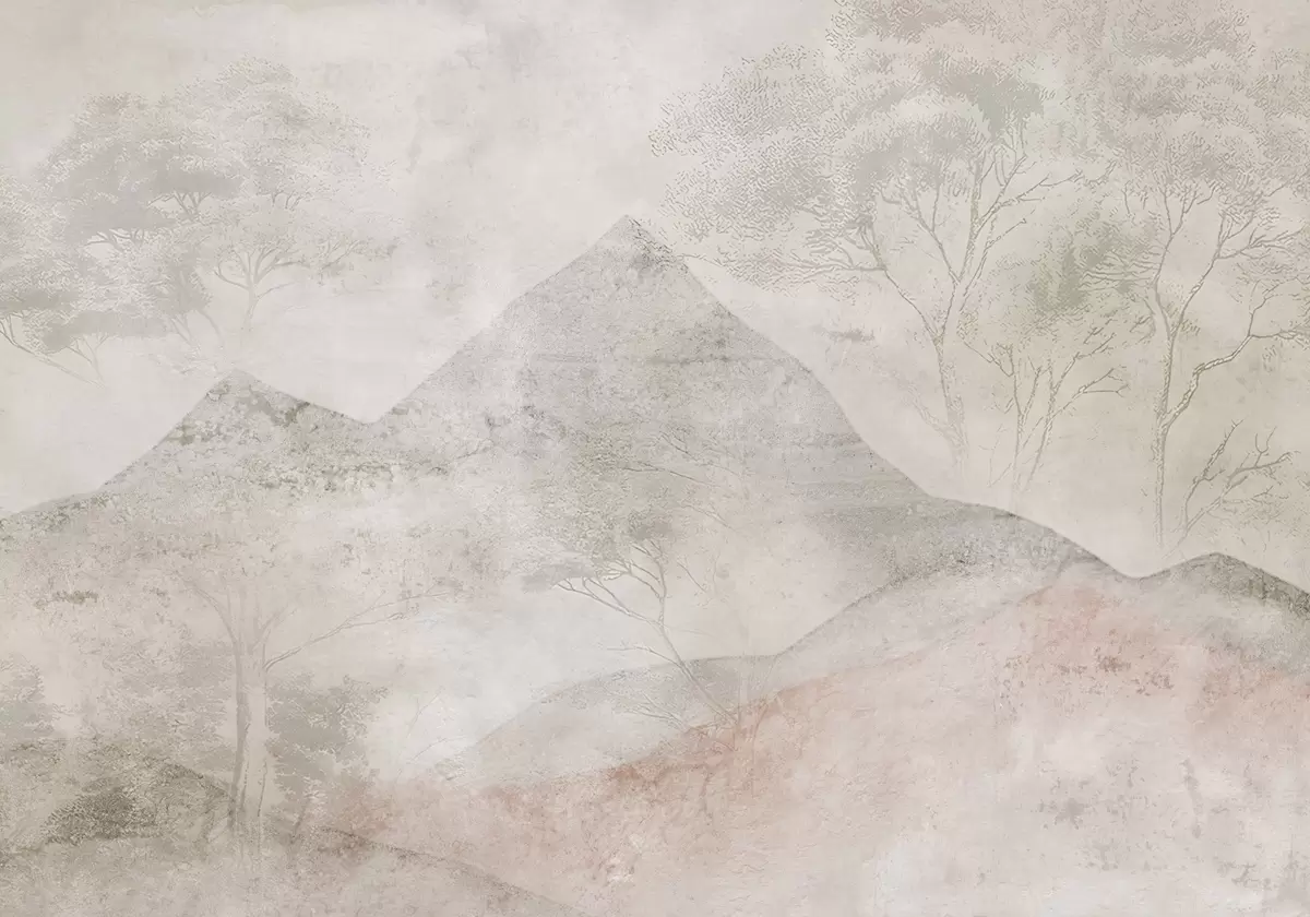 Wall murals Soft pastel mountains and trees in light fog Nr. w04954